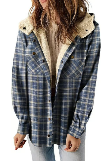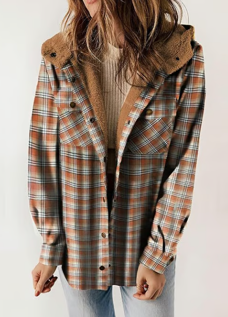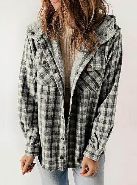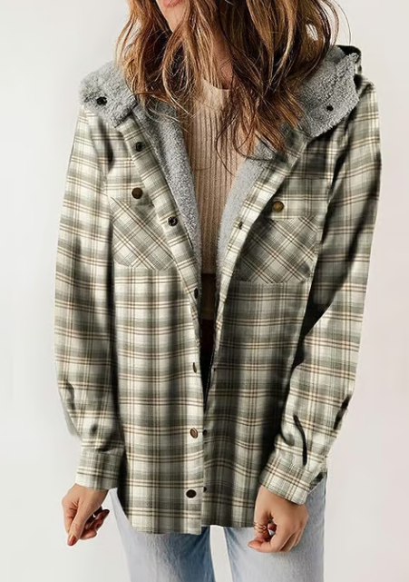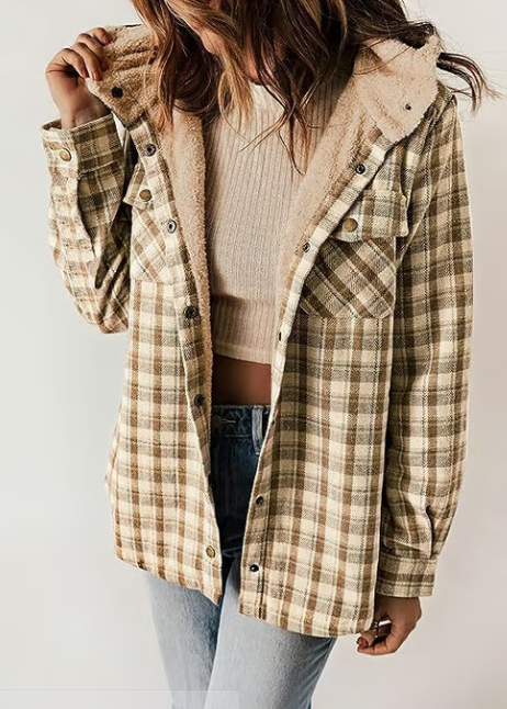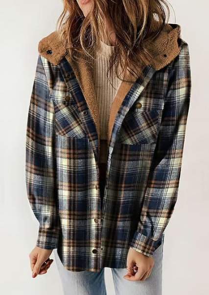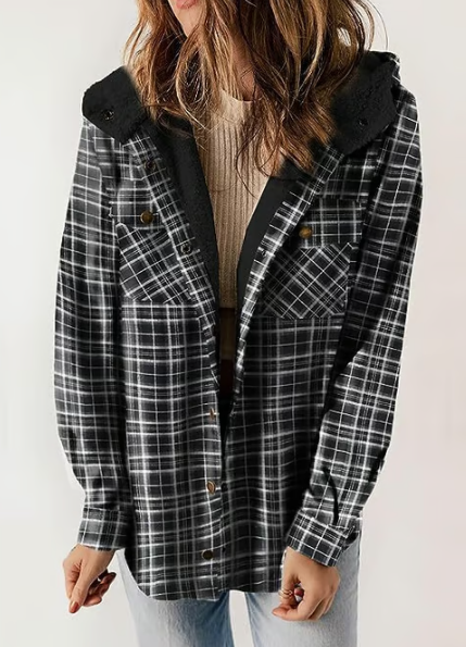 Förälska dig i rutmönster! Denna fleecefodrade jacka med huva är din nya favorit för mysiga höstdagar. Kombinera den med dina favoritjeans och stövlar för en look som är både bekväm och stilfull.