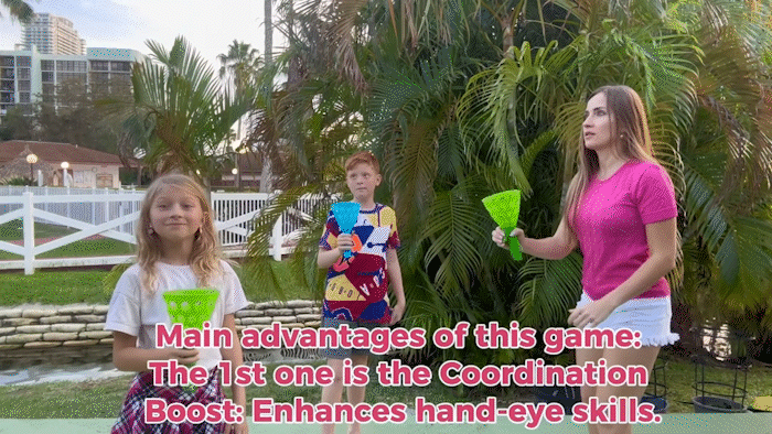 Satsen inkluderar 6 färgglada, hållbara bollar som är motståndskraftiga mot slitage och stötar, vilket ger minimalt ljud vid landning. De ergonomiska handtagen är halkfria och lätta att greppa, vilket minskar handledsansträngningen och säkerställer bekväm lek under längre perioder. Byggd för att klara tuff lek, förblir detta spel intakt och oförvrängt, vilket lovar långvarig kul och färdighetsutveckling.