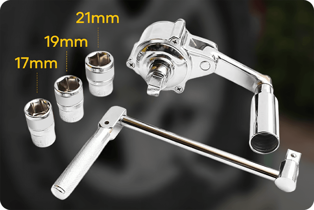 Snabbt borttagning och installation av hjulmutter gör däckbyte enkelt.