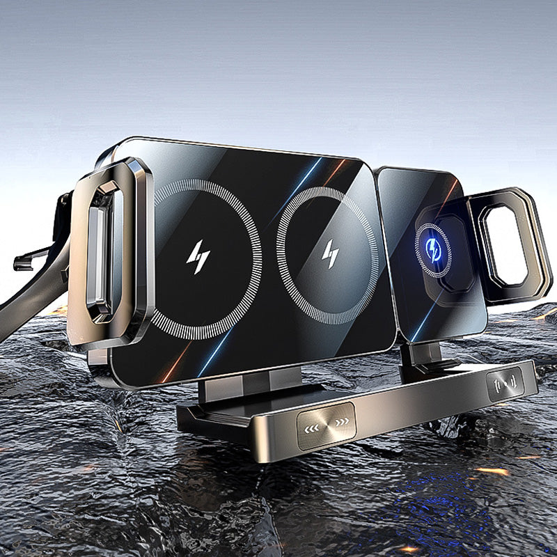 SÄKER TRI-KLÄMMDESIGN – Utrustad med tri-axlad klämkraft och armar belagda med silikon håller hållaren apparaten stadigt även på guppiga, ojämna eller kurviga vägar. Halk- och vibrationsskydd förhindrar oavsiktliga tapp, vilket garanterar stabil navigering och oavbruten laddning under hela resan. Denna design ger extra trygghet under dagliga pendlingar eller långresor.