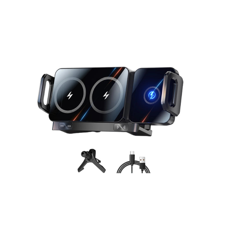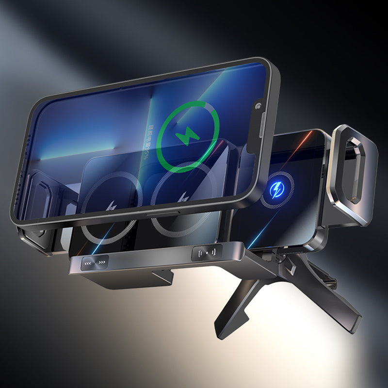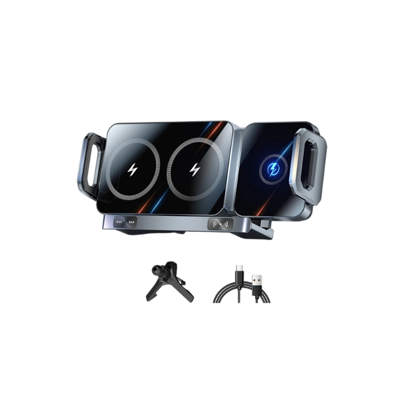 SMART SNABBUPPLADDNING – Utrustad med ett dubbelspolesystem och 15 W snabb trådlös laddning säkerställer denna hållare effektiv och stabil laddning för kompatibla smartphones. Den förtjockade spolen påskyndar laddningen samtidigt som ytan förblir sval vid beröring, vilket skyddar enheten mot överhettning. En reserverad laddningsport gör det också möjligt att använda andra tillbehör samtidigt, vilket gör den till en pålitlig laddningskompis under varje bilresa.
