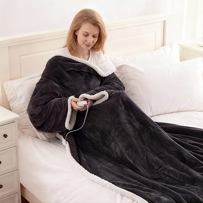 Flanellfilt med Ärmar och Inbyggd Värmefunktion