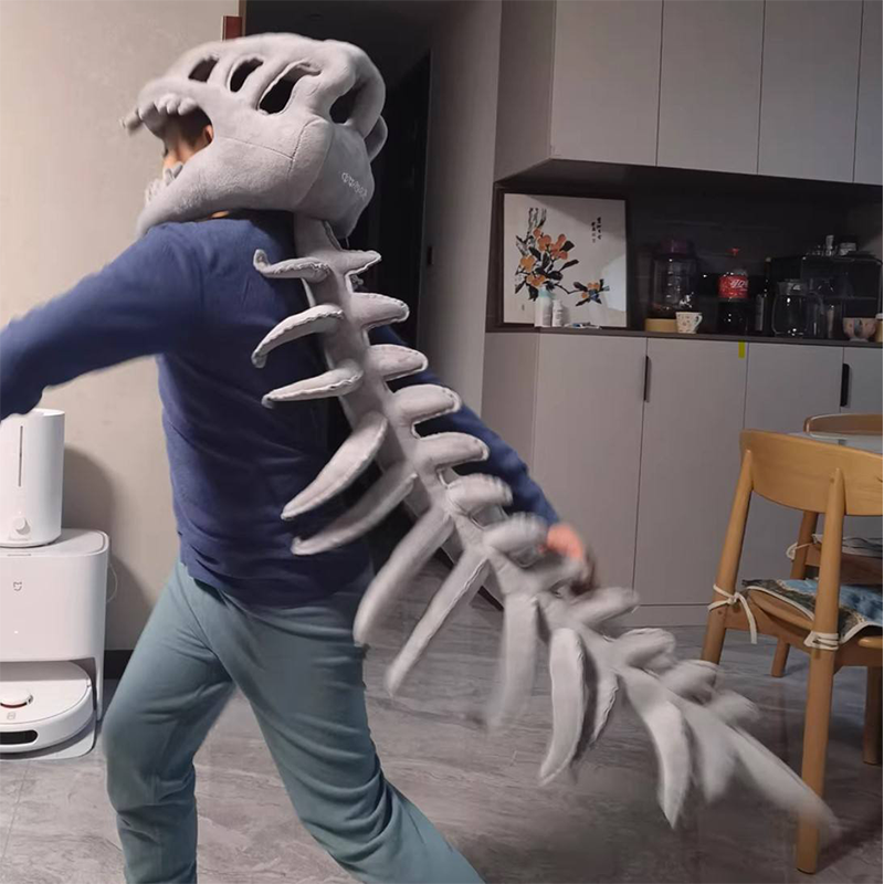 ROLIG DESIGN MED DINOSAURIESKELETT: Inspirerad av förhistoriska skelett med en lekfull twist, ger denna plyschdräkt omedelbar humor och fantasi för både barn och vuxna. Bärarna förvandlas till en fånig dinosauriefigur, vilket väcker glädje och skratt på fester eller under lek hemma.