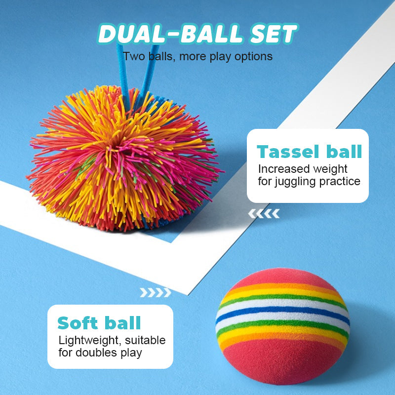 TWO BALLS FOR VARIETY: Comes with two different balls: a lightweight soft ball ideal for back-and-forth play and a tassel ball perfect for juggling and solo practice. This variety keeps play exciting and adapts to different skill levels and play styles.
