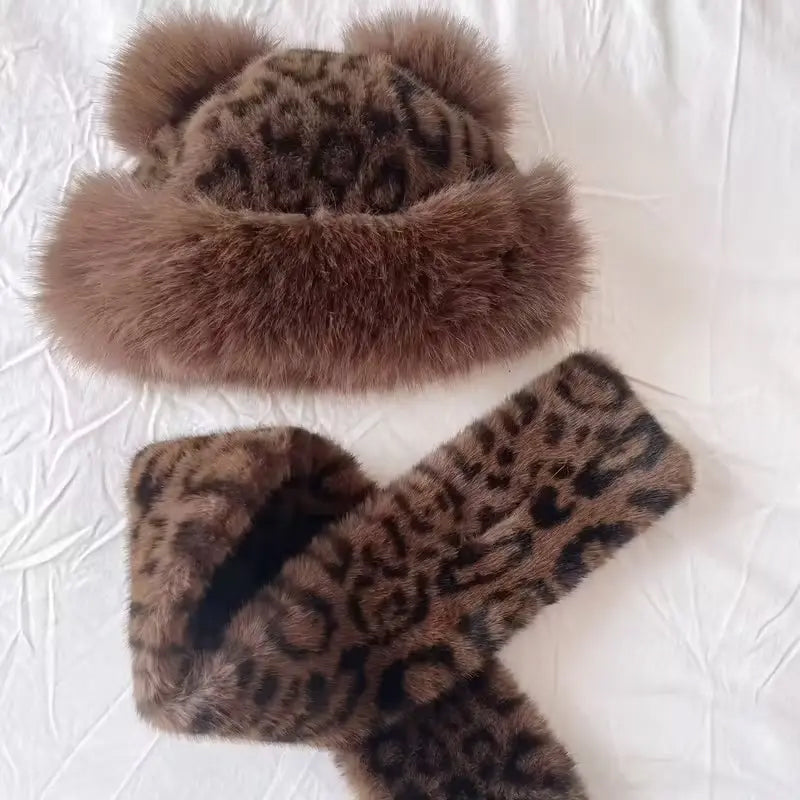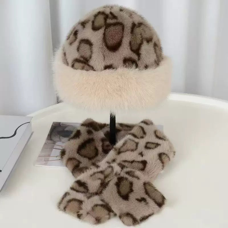 Leopard-Print Plush Hat & Scarf 2-Piece Set