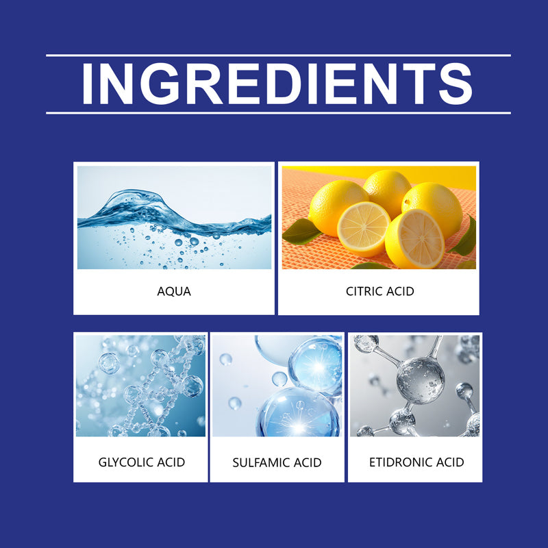Huvudingredienser: Vatten, citronsyra, amidosulfonsyra, glykolsyra, hydroxietylidendifosfonsyra